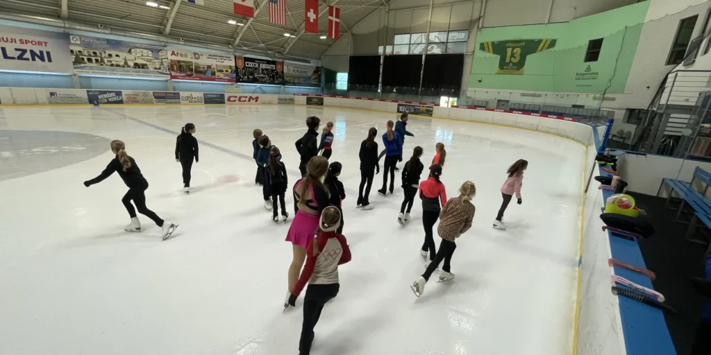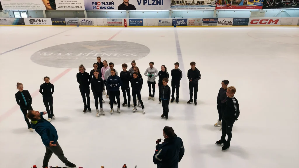 We are starting with the youngest skaters, that want to train like more advanced groups (starting with around 5 years, if they want and can train 2-3 hours on the ice and the same also off-ice till to older skaters wanting to improve)